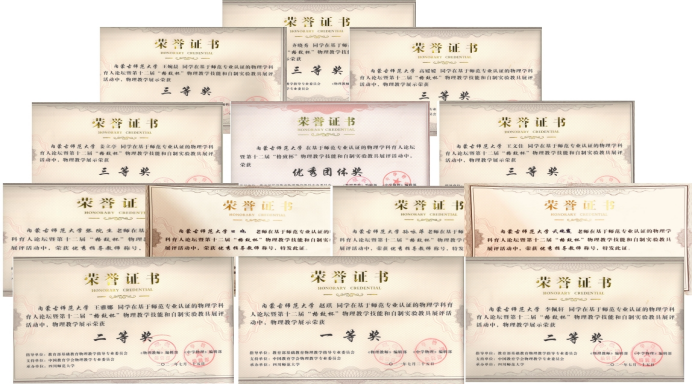 物理与电子信息学院选派的5名本科生、3名研究生在带队教师万欣欣老师和指导教师武晓霞老师的带领下参加了比赛。经过紧张激烈的比赛,我院选手表现出色,成绩优异:在教学技能交流展示活动中,本科生荣获一等奖1项,二等奖1项,三等奖3项,研究生荣获二等奖1项,三等奖2项;孙咏萍、张院生、田晓和武晓霞老师荣获“优秀指导教师”称号,我校也荣获“优秀团体奖”。