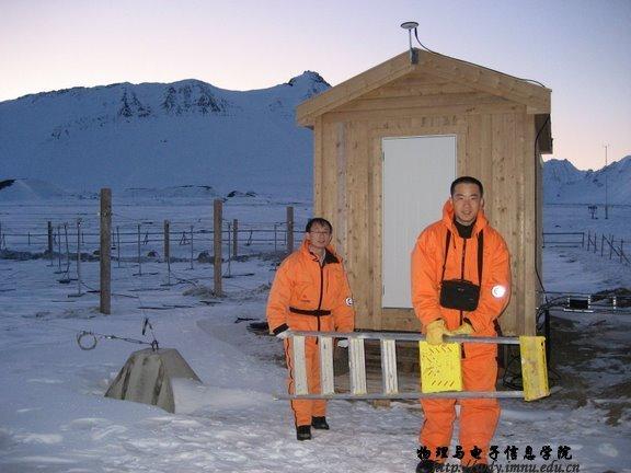 根据《2008年北极黄河站科学考察现场实施计划》,本次赴北极科考的项目名称为:“中国北极黄河站电离层观测(常规观测项目)”( Ionospheric observation at Chinese Arctic Yellow River station)。依托课题为国家自然科学基金重点项目:地球极隙区的电离层踪迹及其动力学过程研究,中国极地科学战略基金项目“极区电离层闪烁与不规则体特性研究”;其他项目:极区电离层闪烁特性研究。项目承担单位分别为中国极地研究中心、中国电波传播研究所、中科院地质与地球物理研究所。现场执行人共7人,其中,中国极地研究中心3人: 黄德宏、韩德胜(内蒙古师范大学物理与电子信息学院96届毕业生,现为中国极地研究中心副研究员,物理与电子信息学院兼职硕士生导师)、陈卓天;内蒙古师范大学1人:刘建军(内蒙古师范大学物理与电子信息学院2006级凝聚态专业硕士研究生);中国电波传播研究所2人:何绍林、袁亚平;中科院地质与地球物理研究所1人:宁百齐。
