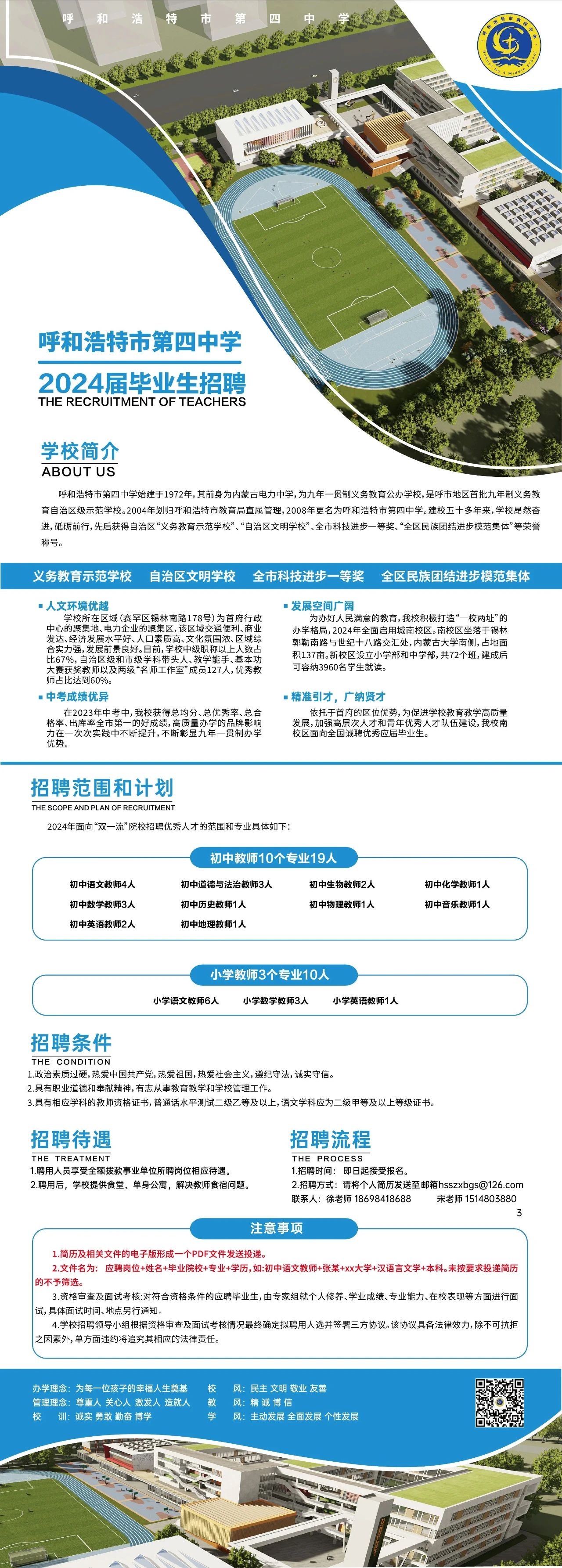 【就业信息】呼和浩特市第四中学2024届毕业生招聘