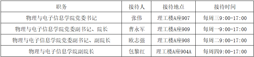 接待日采取院长、书记轮流接待的形式,从本学期起,每周一到周四均有一位学院领导与师生“一对一”交流,畅谈心中所思所想,零距离沟通。有沟通需求的师生别错过,快约起来吧!