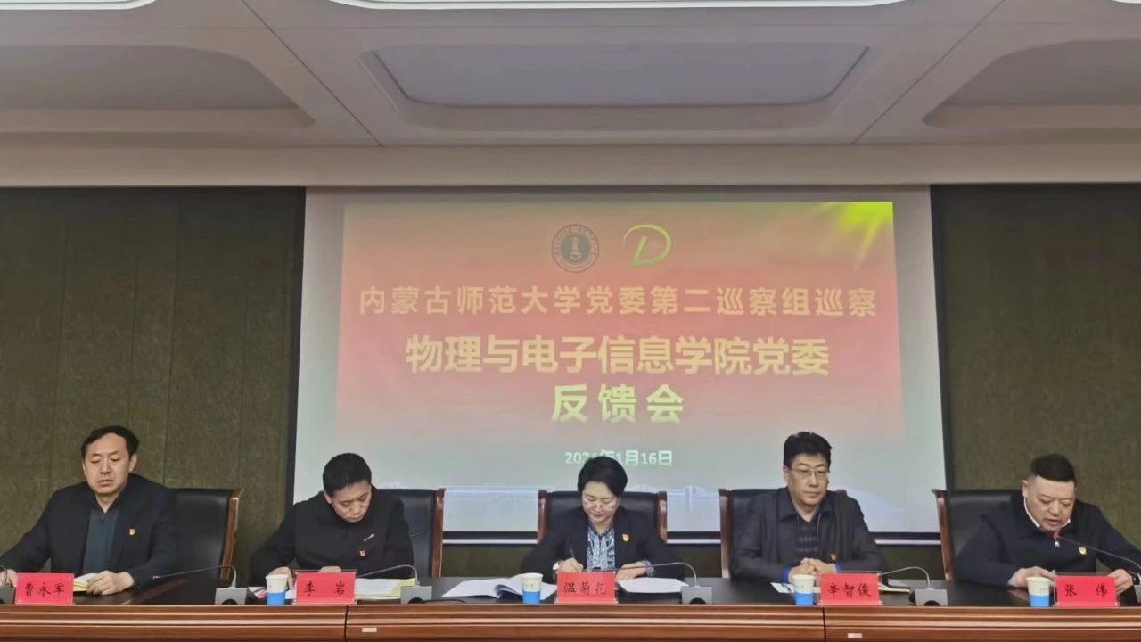 根据学校党委统一部署,1月16日,校党委第二巡察组巡察物理与电子信息学院党委反馈会召开。自治区纪委监委驻内蒙古师范大学纪检监察组副组长、纪委副书记兼纪检监察处处长温菊花、党委第二巡察组组长辛智俊、党委第二巡察组副组长李岩、党委第二巡察组成员秦云、于萨日娜、学院领导班子出席会议,环节干部代表参加会议。会议由学院党委书记张伟主持。