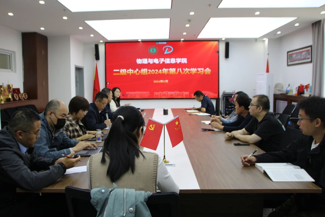 为深入学习宣传贯彻党的二十届三中全会精神,学习贯彻习近平总书记在全国教育大会上的重要讲话精神,9月14日上午,物理与电子信息学院在两校区会议室召开了2024年第八次二级中心组(扩大)集体学习会。与会人员集体学习了党的二十届三中全会审议通过的《中共中央关于进一步全面深化改革、推进中国式现代化的决定》,传达学习了全国教育大会精神以及习近平总书记在全国教育大会上的重要讲话精神、《中共中央国务院关于弘扬教育家精神 加强新时代高素质专业化教师队伍建设的意见》文件精神,学习了《内蒙古师范大学新一轮本科教育教学审核评估自评报告》。学院领导、党委委员、支部书记、环节干部以及全体班主任参加,党委书记张伟主持会议。