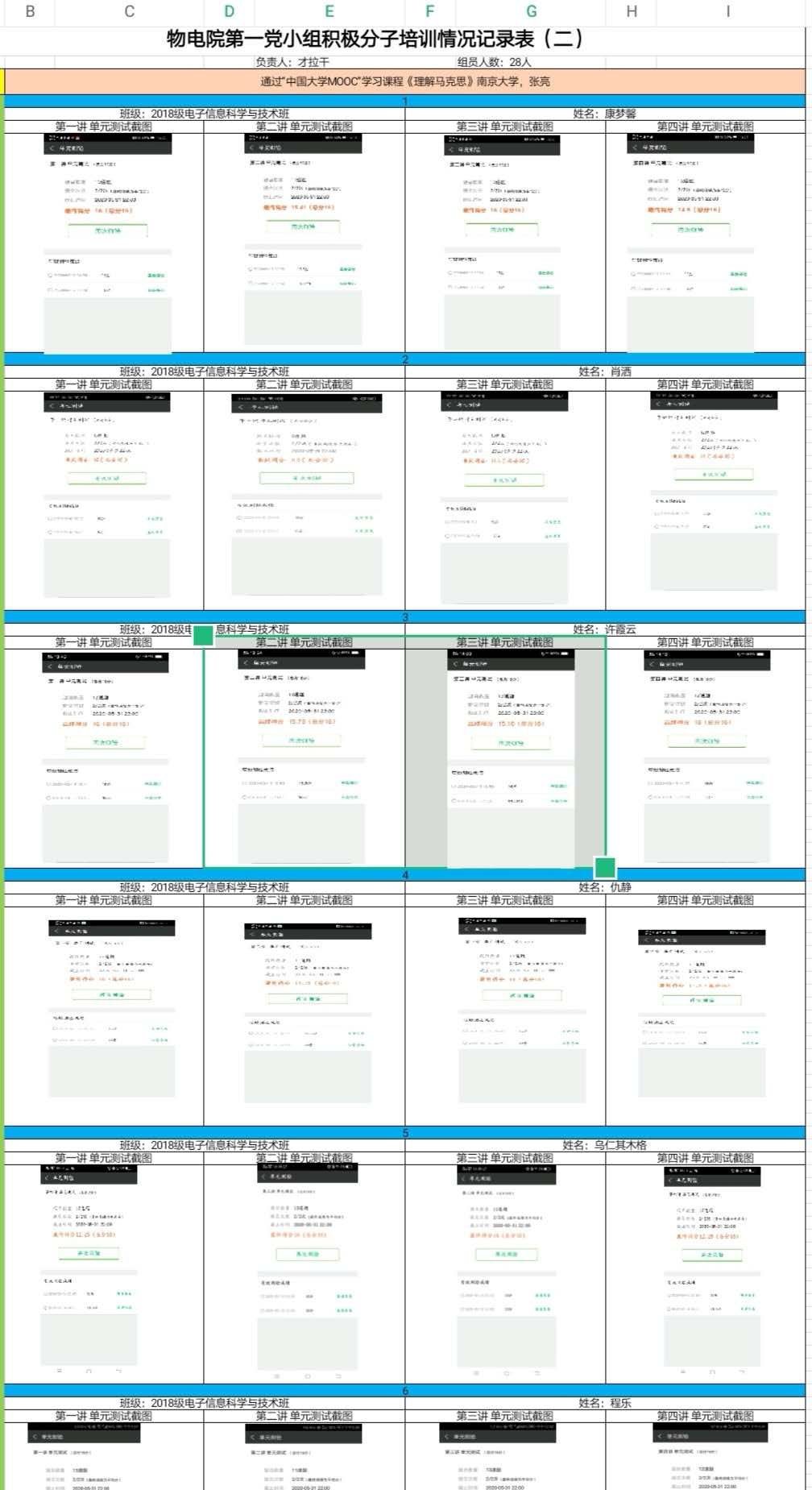 为落实好校党委关于应对新型冠状病毒感染肺炎相关工作精神,切实加强入党积极分子、发展对象、预备党员的培养教育,学院党总支在疫情期间以线上与线下相结合的培养教育方式开展培训工作。通过“学习强国”APP的党史、十九大时间、用典等栏目学习党的路线、方针、政策和党的基本知识教育,“中国大学MOOC”学习课程,观看红色电影或纪录片,经典著作阅读》,在有条件的情况下参加一次社区(村)志愿者防疫工作等课程进行了培训。