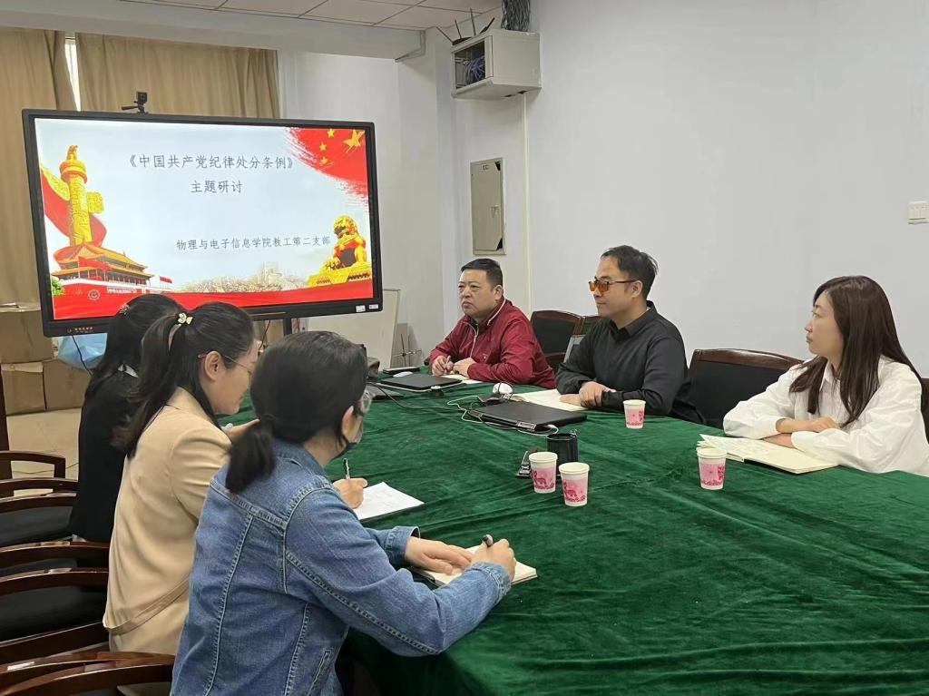 4月18日,我院教工第二党支部召开集中学习《中国共产党纪律处分条例》暨“一融双高”党建引领学科专业高质量发展专题研讨会。会议由教工二支部书记张丽娜主持,学院党委书记张伟参加支部学习研讨。