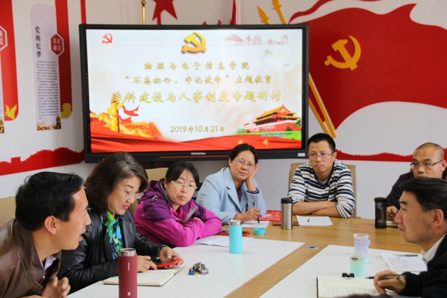 10月21日下午,我院召开“不忘初心,牢记使命”主题教育学科建设与人事制度专题研讨会,学校指导组张克玉、张成梅、董强到会指导,学院领导班子成员、各系主任、硕士点负责人、教师代表参加研讨,会议由副院长曹永军教授主持。