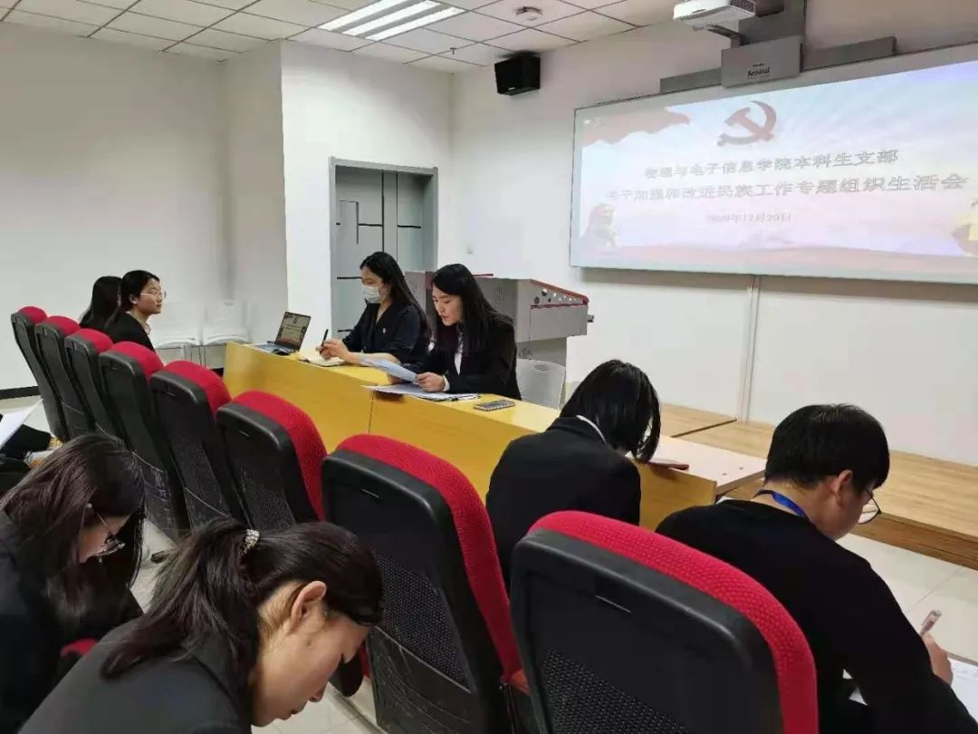 按照校党委《关于认真开好加强和改进民族工作专题组织生活会的工作方案》要求,认真对标对表习近平总书记关于民族工作、推广普及国家通用语言文字的重要论述和党中央决策部署,深刻反思我区民族工作存在的不足及推进双语教学改革中的问题和教训,12月29日晚7点,我院本科生支部在理工楼A座303室召开加强和改进民族工作专题组织生活会,本科生支部党员全体参加会议,预备党员列席会议,会议由本科生支部书记宝力尔老师主持。