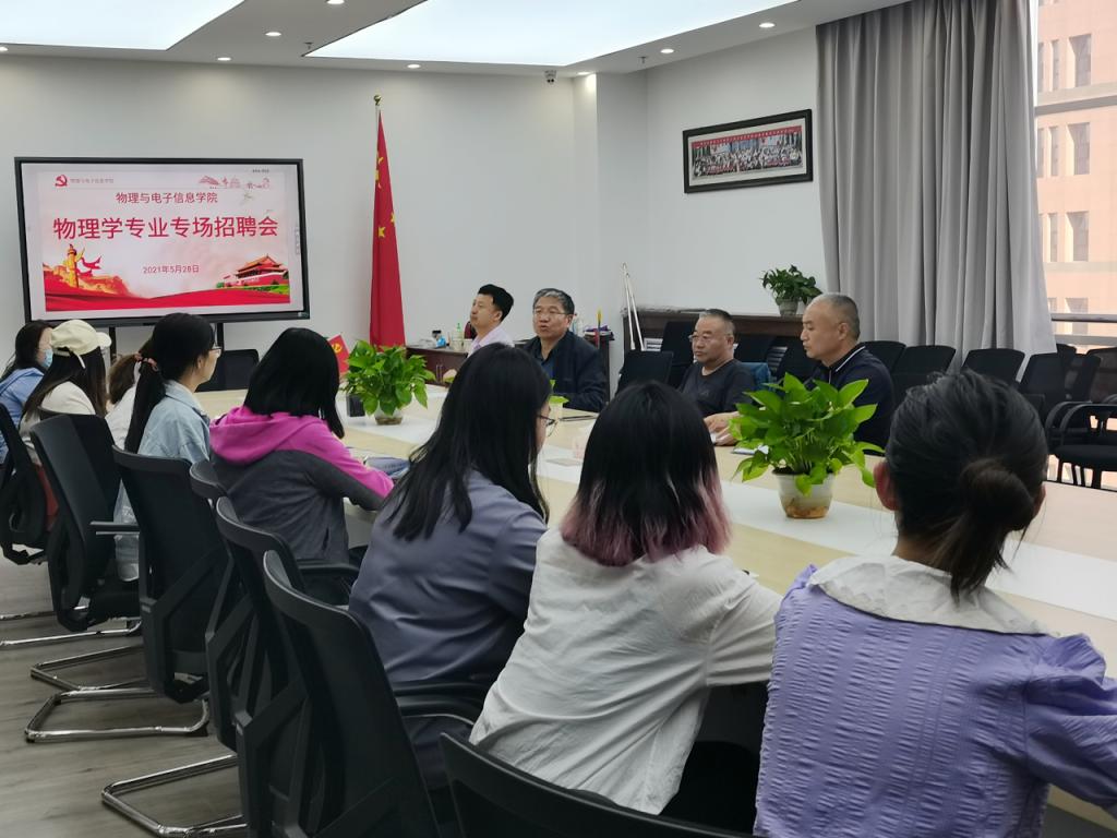 5月28日下午5点钟,巴盟奋斗中学校长一行来我院开展专场招聘会。我院组织2021届研究生和物理学专业本科生参加此次专场招聘会。
