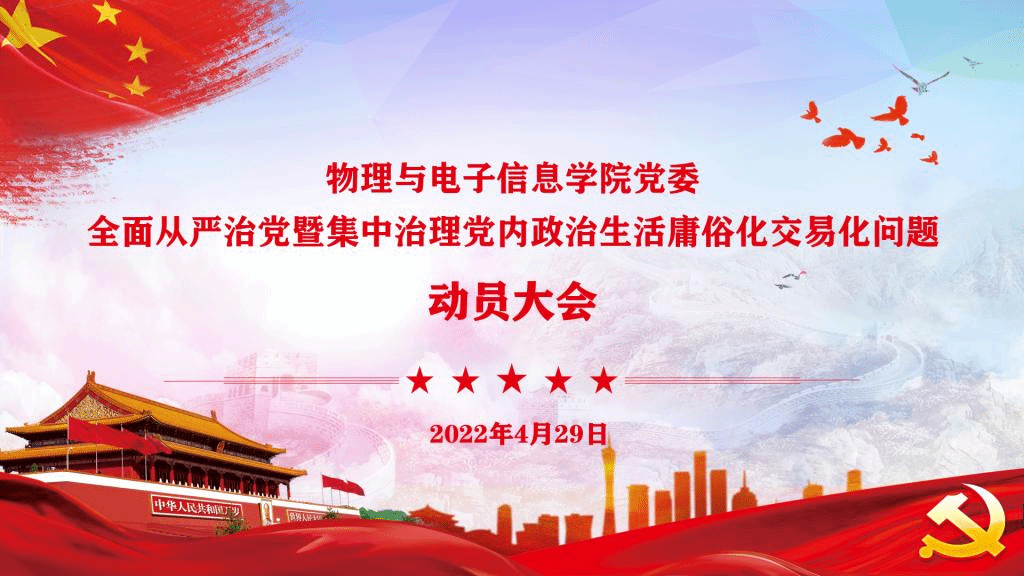 4月29日下午,物理与电子信息学院党委召开集中治理党内政治生活庸俗化交易化问题工作动员会,全面贯彻落实校党委关于党内政治生活庸俗化交易化问题集中治理工作要求。会议由学院党委书记刘美玲主持,院领导班子成员及学院全体教职工参加了会议。