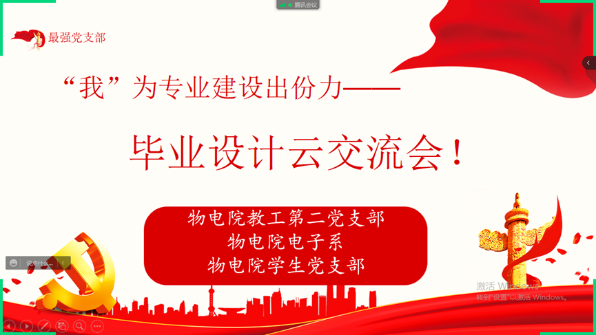 根据学校党委2022党建工作要点要求,落实组织生活会整改任务、持续推进“最强党支部”建设,以“严明党的政治纪律,严肃党内政治生活”为主题,物理与电子信息学院教工二支部、本科生支部与电子系于5月14日联合开展“‘我’为专业建设出份力——毕业设计作品云交流会”活动。