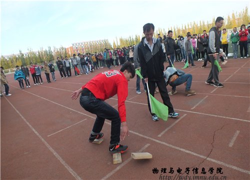 (本网讯 图/文 郑武超 张纹莹)10月12日一早,我院年轻的健儿们由我院学生会带队乘校车到达盛乐校区参加由我校公共体育教研部举办的趣味运动会、博克比赛和脚斗士比赛。在赛场上,比赛项目多种多样且富有极佳的乐趣,如博克、脚斗士、趣味保龄球、袋鼠跳、跳绳、踢毛键、蚂蚁搬家、负重跑、摸石过河等项目引起运动员和观众们的热烈欢迎。通过此次活,不仅展示了我院学生良好的精神风貌,而且更加凝聚了团队协作的强大战斗力!