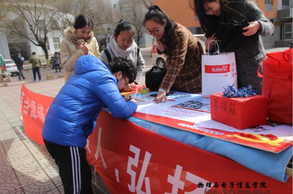 本网讯 2016年3月5号,是学习雷锋纪念日,也是中国青年志愿者服务日。为了引导广大青年学生继承优良传统,弘扬志愿服务精神,我院学生会成员分别在遨游腾广场和十号宿舍楼举行爱心募捐活动。