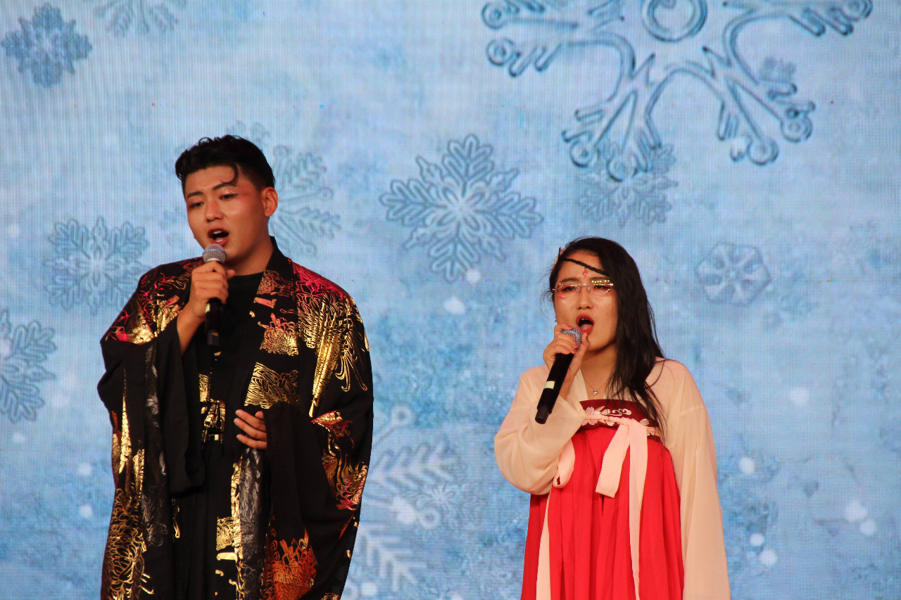晚会气氛热烈激昂,热情奔放的民族舞蹈,悠扬深情的男女对唱,青春洋溢的串烧,还有令人捧腹大笑的小品相声。学院领导、总支委员与支部书记集体朗诵《祖国啊,我亲爱的祖国》、快闪《歌唱祖国》将晚会推向了高潮。