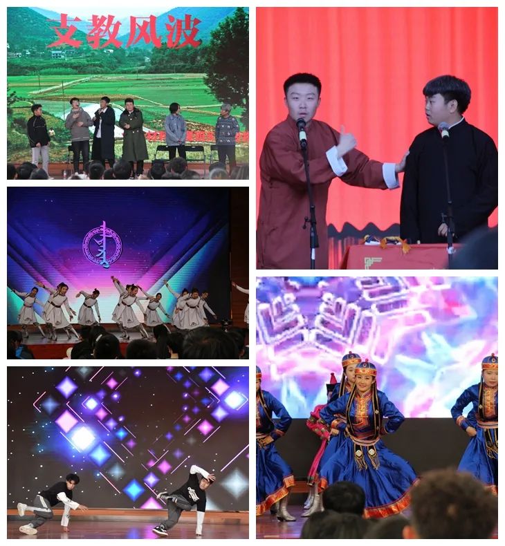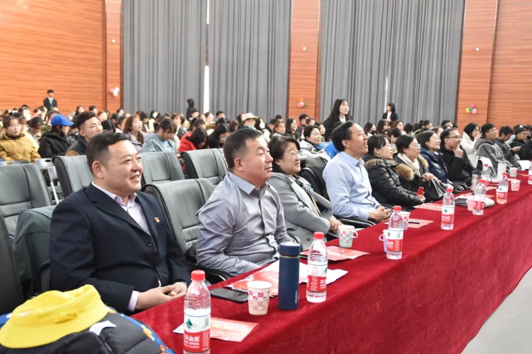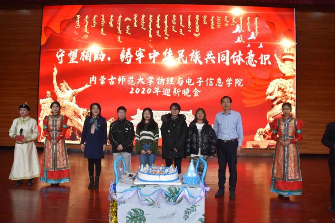 本次晚会有来自多个年级学生准备的包括民族舞、街舞、相声、小品、歌唱等节目,更有副书记兼副院长张伟老师倾情演唱的《梦中的额吉》。会场内掌声雷动、欢笑阵阵,同学们一同度过了愉快的下午时光。当得知联欢会当天是20级蒙一班宝乐尔、科技班袁嵘,20级学术型研究生苏门、朱亚丽四位同学的生日,学院特地送上蛋糕为他们度过一个人生中难忘的生日。最后,领导老师们走上舞台,与演员们亲切合影,为联谊会画上了完美的句号。