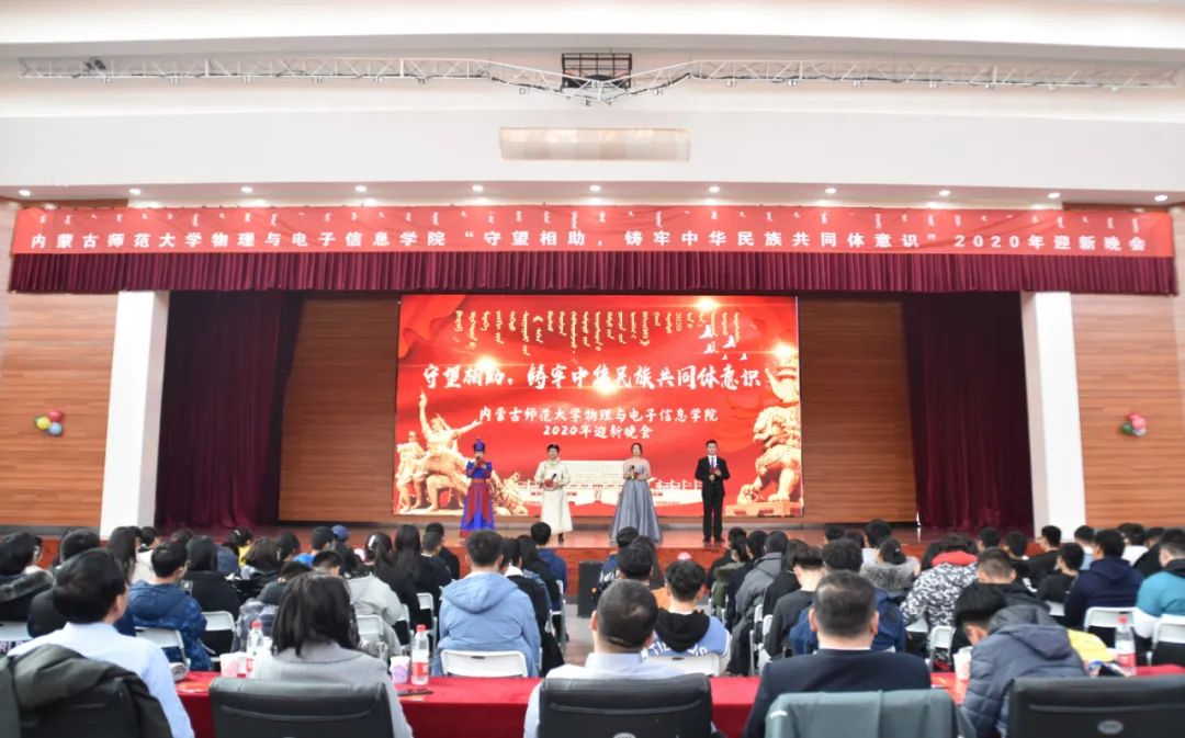 为铸牢中华民族共同体意识,内蒙古师范大学物理与电子信息学院“守望相助,铸牢中华民族共同体意识”2020年迎新联谊会于2020年11月21日下午14:00在盛乐校区学生事务中心二楼报告厅隆重举行。旅游学院党委副书记兼副院长包长喜,我院党委书记刘美玲、副院长曹永军、副书记兼副院长张伟,各班班主任、环节干部,团总支、学就办、辅导员及2020级本硕全体学生共计600余人参加。