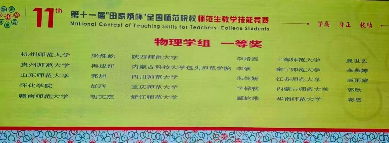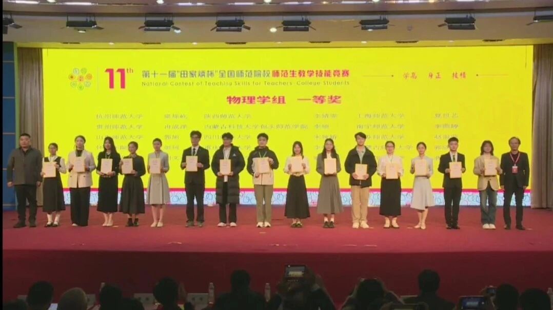 该项赛事由田家炳基金会冠名赞助,浙江师范大学承办,并得到全国地方高等师范院校教务处长联席会议的专业指导,是国内师范生教学技能竞赛中层次最高、规模最大作为田家炳基金会冠名支持的全国性师范教育权威赛事。“田家炳杯”以交流培养经验、提升教学能力、储备教育人才为核心使命,本届大赛吸引全国289所师范院校参与初赛,经严格评审,44名物理学优秀选手脱颖而出晋级决赛,在浙江师范大学的校园内展开了一场精彩纷呈的教学技艺交锋。郭欣同学作为内蒙古师范大学物理学科代表参赛,比赛现场涵盖教学设计、多媒体课件制作、即席讲演、模拟上课、板书等环节,她积极备赛,激情饱满,充分展现了我校师范生的扎实素养与专业风采。