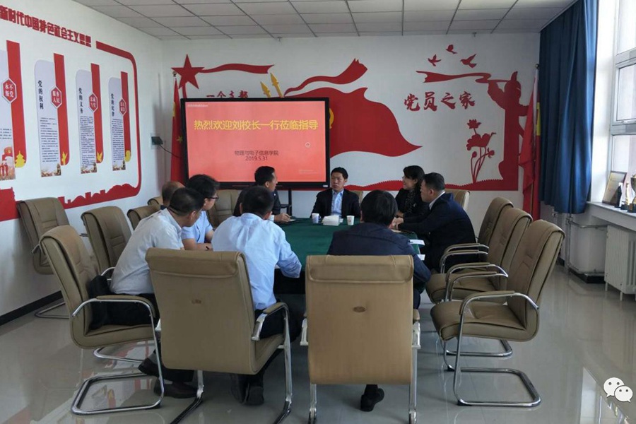 5月31日上午,我校党委委员、副校长刘九万一行深入盛乐校区物理与电子信息学院调研,指导工作。我院党总支书记刘美玲、副院长曹永军、党总支副书记兼副院长张伟、副院长那日苏及相关职能部门负责同志陪同调研。
