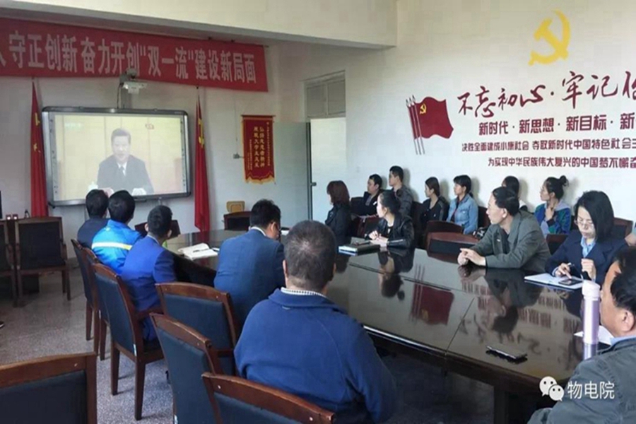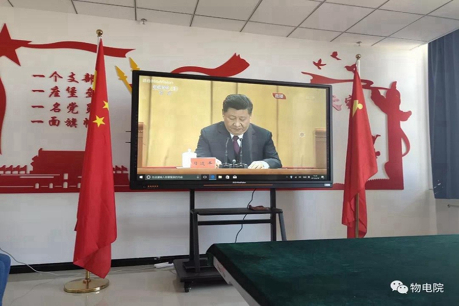 4月30日上午,纪念五四运动100周年大会在北京人民大会堂隆重举行。中共中央总书记、国家主席、中央军委主席习近平将出席大会并发表重要讲话。物理与电子信息学院党总支书记刘美玲,副院长曹永军,副书记兼副院长张伟,副院长那日苏,以及团总支、学就办负责人,各系主任、中心负责人,各班班主任 、辅导员教师22人,本科、研究生代表46人,分别赛罕、盛乐两校区观看直播,认真学习习近平总书记重要讲话。