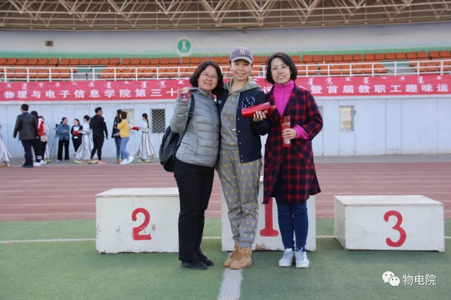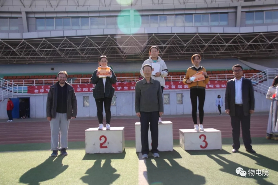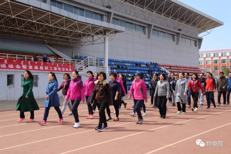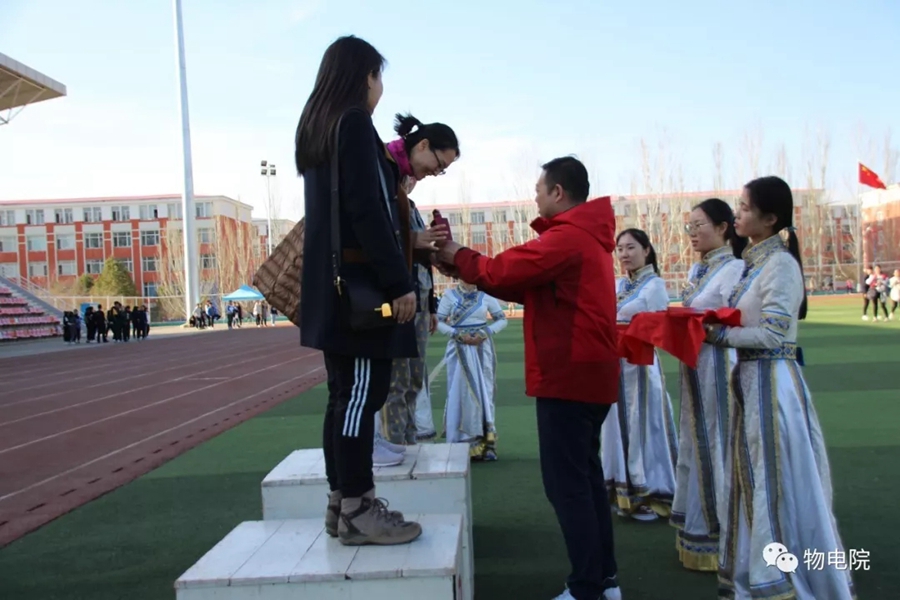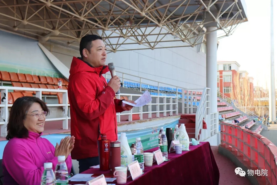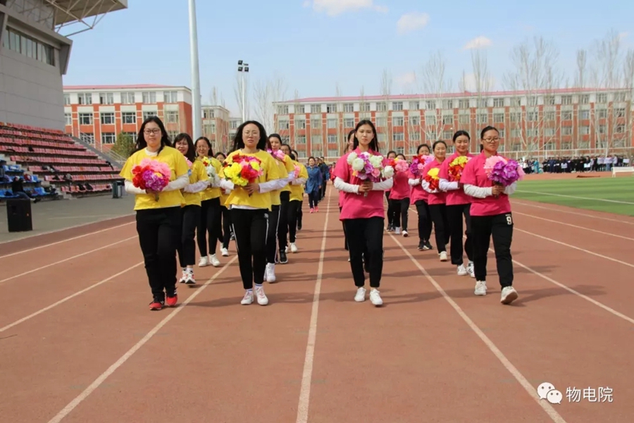 本网讯: 为增添校园文化活力,锻炼学生身心、培养学生团结合作的能力,同时也为了丰富教职工的业余文化生活,4月11日,我院于盛乐校区东操场举行物理与电子信息学院第三十届田径运动会暨首届教职工趣味运动会。学院党总支书记刘美玲,党总支副书记兼副院长张伟,副院长那日苏,学院系、办、中心、团总支、学就办老师,各班班主任、全院教职工以及学院本硕学生700余人参加了本届运动会。 下午两点,运动会在激昂的音乐中拉开序幕。首先,英姿飒爽的国旗队踏着整齐而坚定的步伐向主席台走来。紧接着,彩旗队、花束队、教职工方阵、运动员代表方阵排成整齐的队列,齐声高喊口号,依次走过主席台。在运动员代表、裁判员代表庄严宣誓后,学院党总书记刘美玲致开幕词,她强调了举办运动会的重要意义,并祝愿每位师生运动员能够不负期望,取得佳绩。 比赛正式开始,参赛运动员都精力充沛、为班级荣誉而奋斗着。田赛场上,运动员们轻盈地跃过跳杆,他们骄傲地掠过沙地;短跑赛道上,他们像离弦的箭一般势不可当;接力比赛中,每个人都竭尽全力、精诚配合,在接棒擦肩而过的瞬间默契地相视而笑;5000米赛道上,他们持之以恒、永不言弃的精神感染着在场的每一位同学,大家齐声为他们呐喊欢呼…… 与此同时,教职工趣味运动会比赛项目也在操场中央进行着。两人三足、带球障碍跑……各种有趣的比赛吸引了很多老师积极参与。平时在讲台上严肃认真的老师们都大显身手,玩得不亦乐乎。精彩的比赛吸引了很多学生的围观,都为老师们加油鼓劲。 经过一下午的激烈比拼,本次运动会的全部比赛项目顺利结束。闭幕式上,张伟副书记宣布最终成绩:18级物理蒙班、17级物理蒙班、16级电子信息工程班获得团体总成绩前三名。随后,那日苏副院长致闭幕词,刘美玲书记代表学院向国旗护卫队授予锦旗。至此,本届运动会圆满结束。 本次运动会的举办使学生迎接挑战的意志和承担风险的能力得到了充分展现,也培养了同学们的竞争意识、协作精神和公平观念。同时,也为平时辛苦工作的老师们提供了休闲放松、与同学们亲密接触的机会。运动会的成功举办也离不开工作人员的辛勤付出,他们付出了很多,但收获和自豪更多!