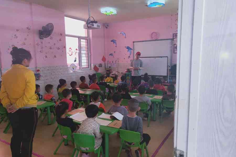 队员们在老师的带领下进入班级。简单的自我介绍后,小朋友们都好奇地围着这群“小大人”们问东问西,争先恐后地向同学们介绍自己和自己最好的朋友。受到天真无邪的孩子们的感染,同学们放下了拘谨,精神饱满地带领小朋友们玩起了击鼓传花的游戏。轻松的游戏过后,同学们带领小朋友们观看程门立雪,孔融让梨等寓教于乐的动画片,让他们懂得了“尊敬师长”、“相互谦让”等中华民族的传统美德。除此之外,同学们还帮助小朋友们并记忆认识各种各样的图形和颜色,使他们对这些有趣的小知识产生了浓厚的兴趣,用稚嫩的童声回应着同学们的提问,课堂气氛十分热烈。在一片欢声笑语中,一转眼,就到了下课时间。