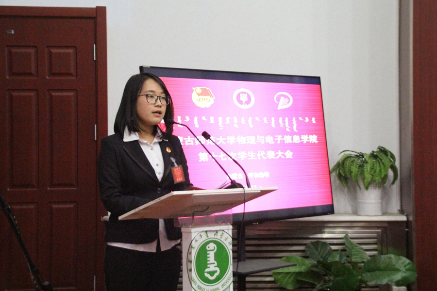 此次会议由第三十二届主席团成员丁研主持,首先由宋鑫伟作大会筹备工作情况报告,随后与会代表就大会筹备工作情况报告,审议通过代表资格审查小组建议名单,审议通过资格审查报告,各代表团组成及团长、副团长名单,大会主席团建议名单(草案),大会秘书长、副秘书长建议名单(草案)、大会议程七项做报告并进行举手表决,均获得全票通过。最后由第三十二届主席团成员德力根杭盖宣读大会注意事项,至此,物理与电子信息学院第十七次代表大会预备会议圆满结束。