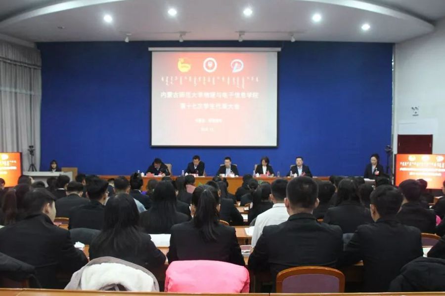 开幕式上大会听取了由物理与电子信息学院第三十二届学生会主席团成员李嘉欣宣读的《内蒙古师范大学物理与电子信息学院第三十二届委员会工作报告》、丁研宣读的《内蒙古师范大学物理与电子信息学院学生会章程(修正案)》(草案)、德力根杭盖宣读的《内蒙古师范大学物理与电子信息学院学生会组织改革实施方案》。开幕式后参会领导与全体代表合影留念。