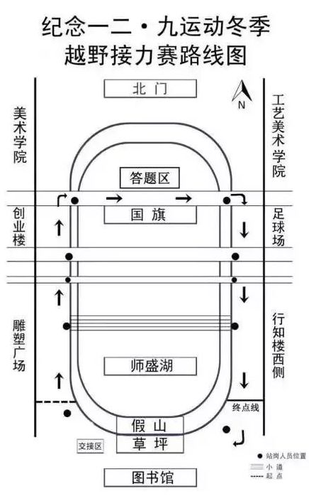 赛前,裁判细心讲解了规则及注意事项。本次比赛为长跑接力,途中设有知识竞答环节,答对一题可以减少本组用时秒数。虽然天气寒冷,却并不能打消同学们的激情。比赛中,我院选手一马当先,以绝对优势稳稳地冲在最前面。而在大题处,他们也以最快的反应速度选出正确答案,继续前行,充分展现了我院学生敢于拼搏、永不放弃的精神。