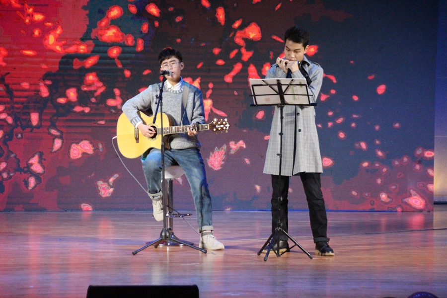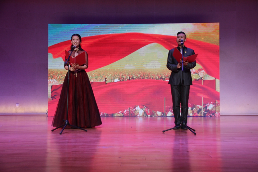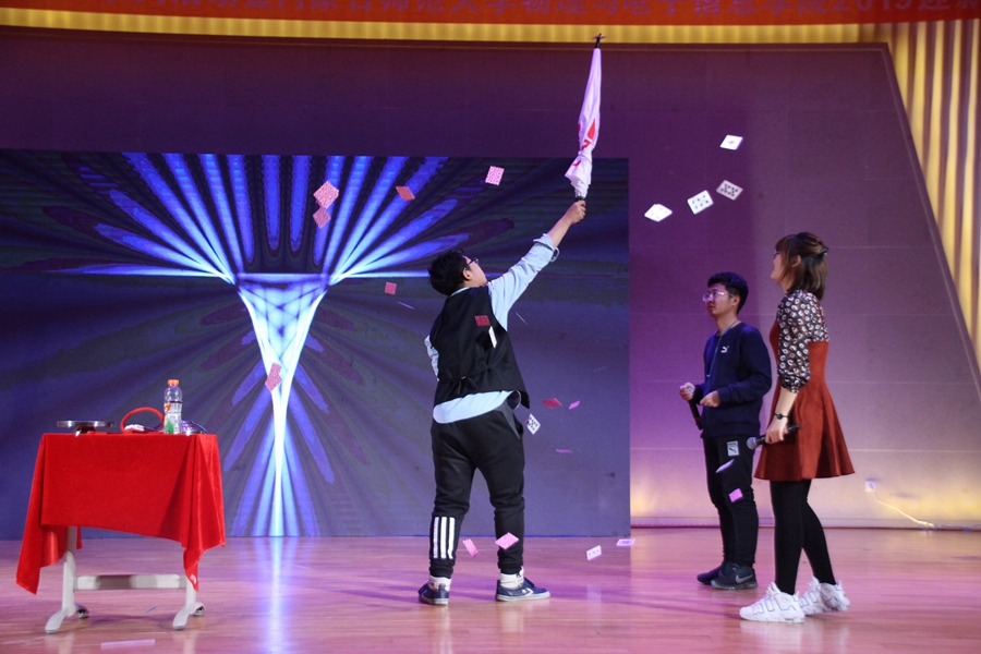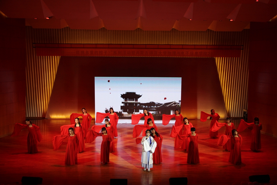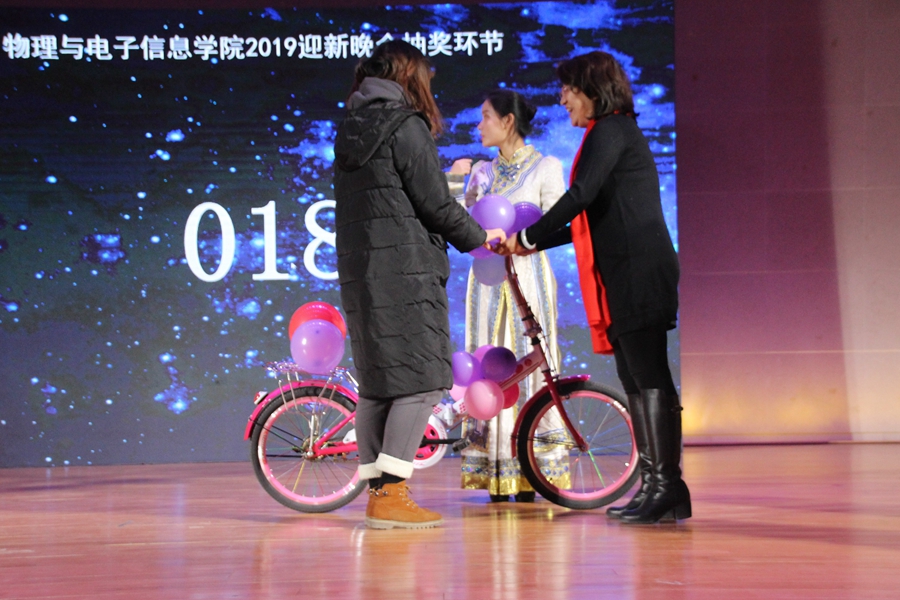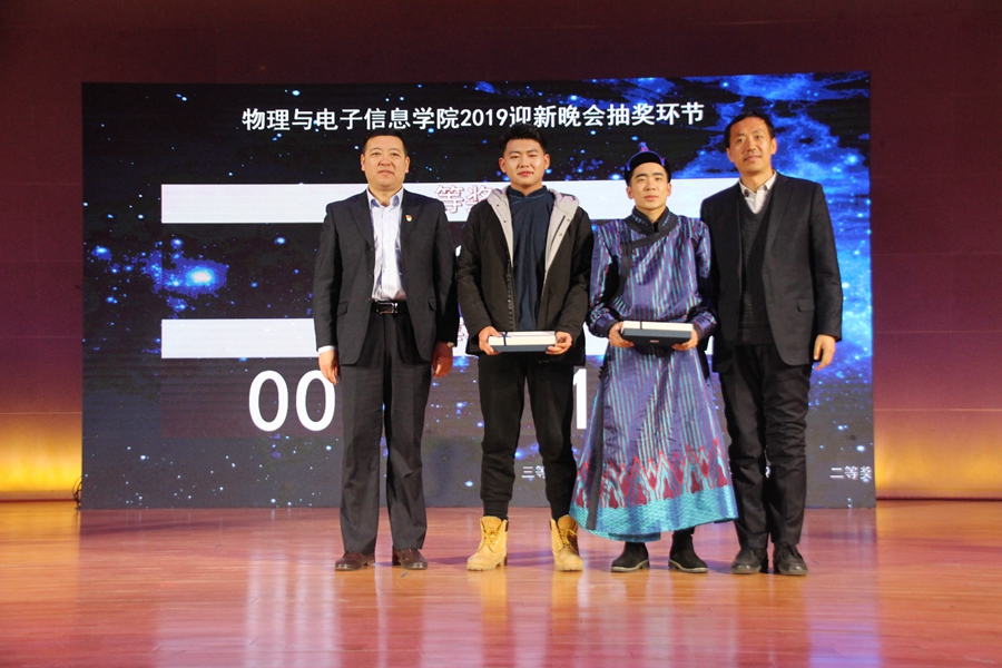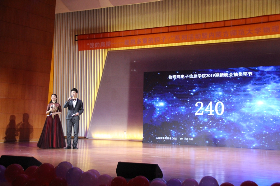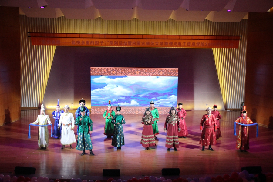 本网讯 为学习贯彻宣传十九大精神、喜迎内蒙古师范大学第十一次党代会,激发同学们的青春活力与集体主义精神,为大学生活画下绚丽难忘的一笔。2018年12月7日晚七点半,“我的肩膀——能挑多重的担子?”系列活动暨内蒙古师范大学物理与电子信学院2019迎新晚会于原民族艺术学院报告厅隆重举行。学生招生就业处处长许琳、团委副书记包双成、学生工作处副处长宝贵、各学院团总支、学生工作与就业办公室的老师们、学院党总支书记刘美玲、副院长曹永军、党总支副书记兼副院长张伟、副院长那日苏及学院教职工与学生500余人参与晚会。 灯光熄灭,观众们的目光被别出心裁的先导片所吸引。影片讲述了新生们从备战高考到来到内师大物电院报道的经历,勾起了同学们无数的回忆。我院领导老师以及18级各班班主任也出现在大屏幕上,对同学们表达了最真挚的欢迎以及殷切的期望。随后,一首洒脱奔放的《像风一样自由》正式拉开了晚会的序幕。四位端庄大气的主持人现身舞台中央。他们衣着华丽,意气风发,言语间透露出满满的自信与活力。古香古色的《玉人歌》展现了玉人们柔美的身段和悠扬的歌声,由辅导员王乐和五位同学们的组合完美演绎了新颖别致的歌曲串烧《声之形》;18工程班青春靓丽的少年少女们深情献唱《热勇》,用青春活力点燃花样年华;神秘的墨镜下,身穿蒙古袍的蒙古族女孩们以舞蹈《拥抱明天的太阳》尽情挥洒梦想。优雅别致的乐器弹唱《浮生未歇》带我们回到了樱花纷飞的季节,辅导员宋鑫伟和18级电子信息工程班程雪琪同学的朗诵《党旗颂》深情歌颂了拥有五千年历史的华夏之光。激动人心的抽奖环节来临,摇动的数字锁定了7位幸运观众,而我们也有幸能欣赏获得一等奖的幸运观众献唱《年少有为》。晚会继续,优美动听的独唱《乌兰巴托之夜》使我们仿佛置身于乌兰巴托静谧美好的夜晚;动漫社的coser们友情出演的舞蹈《极乐净土》将全场的气氛推向沸腾的高潮;相声《铃铛谱》以幽默诙谐的语言惹得观众们捧腹大笑;18物理学蒙班的同学们身着华丽精致的蒙古族服装款款走来,向大家展示民族服装独特的魅力与风情;活力四射的舞蹈《dancing our soul》让大家领略了斗舞的精彩激烈;由17级物理学蒙班全体同学以及班主任木其尔献上磅礴的合唱《永远的蒙古》,描绘出一望无垠的碧波草原。最后,领导老师们走上舞台,与演员们亲切合影,为晚会画下了完美的句号。 这是桃李芬芳、欢声笑语的一夜,有舞姿曼妙,有歌声飞扬。有爱的地方就有梦想,有梦想的地方就有希望,希望同学们能立报国之志,艰苦奋斗,全面发展,树立终身学习的理念,为实现中华民族伟大复兴的中国梦而奋斗终身!注:校党委宣传部新闻媒体创意中心马研同学对本文亦有贡献 图文编辑:刘静怡 矫正稿件:姚锦明 责任审核:宋鑫伟