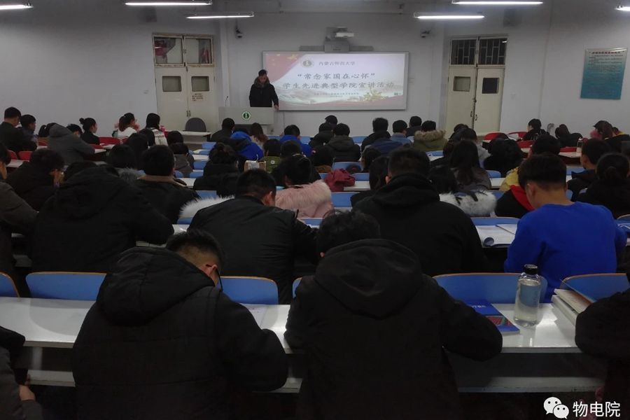 2018年12月10日下午,我院于田楼11共教室举行'' 常念家国在心怀''学生先进典型学院宣讲活动,由辅导员宋鑫伟主持,来自我院的七名品学兼优、思想端正的优秀青年进行演讲。此次活动旨在深入学习贯彻宣传十九大精神、习近平新时代中国特色社会主义思想,全面提高大学生综合素质。