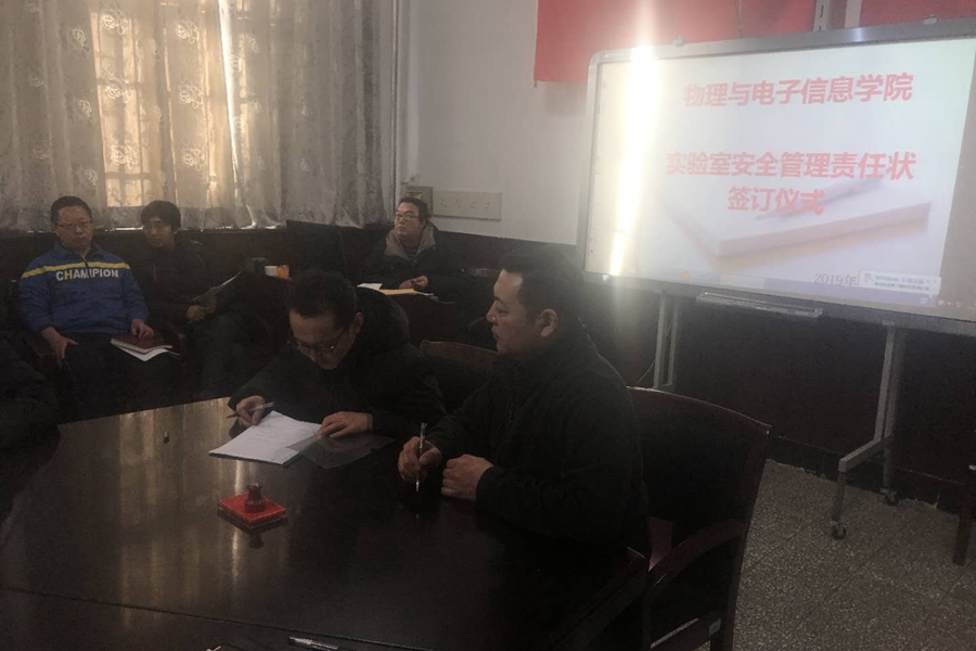 本网讯: 根据关于《进一步加强本科生实验室安全检查的通知》文件要求,为吸取北京交通大学“12·26”较大事故教训,在进一步加强我院本科实验室(机房、实训场所)安全检查工作,落实实验室,安全管理责任,营造平安和谐的教学环境,我院于1月9日、10日对两校区进行了本科实验室、机房安全检查,并在1月15日于物理楼会议室举行实验室安全管理责任书签订仪式,与实验室安全中心负责人签署了二级责任书及三级责任书。