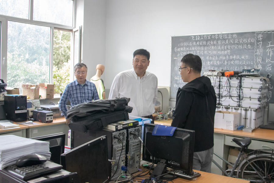 检查过程中,赵副校长针对防火、防电等安全问题向学院领导进行询问,学院领导详细的为赵副校长进行解答。随后赵副校长深入到“飞扬工作室”等实验室进行检查,并强调一定要注意用电安全,制定相关的规章制度。我院一贯对校园安全工作非常重视,并建立起严格完备的实验室安全规章制度,学院领导每学期定期对实验室及教室进行检查。