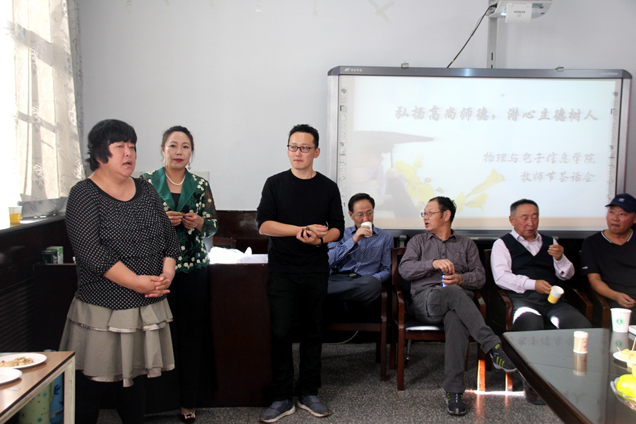 2018年9月7日,我院于物理楼会议室举办以“弘扬高尚师德,潜心立德树人”教师节主题茶话会。学院院长特古斯教授、副院长吉日嘎拉教授、副院长刘美玲老师、退休老教师及全体教师参加茶话会,会议由特古斯教授主持。
