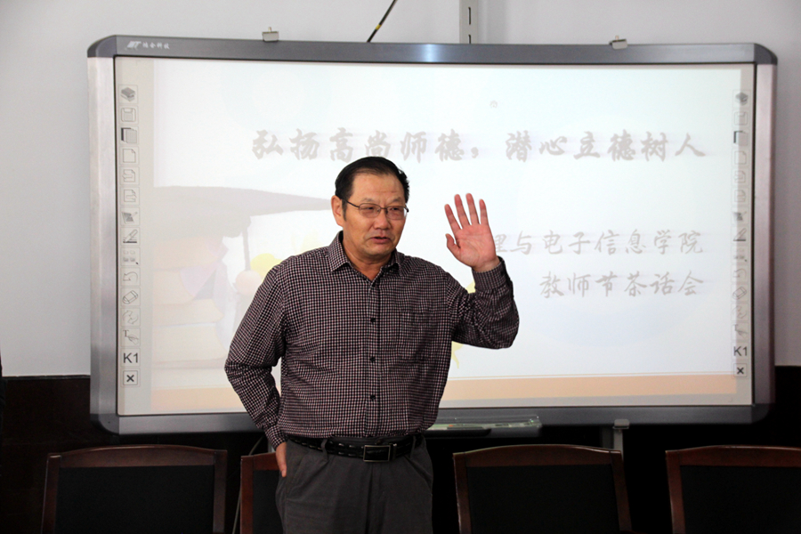 随后由几位学院退休老教师为在场教师浅谈了下自己从教生涯的一些感想,在发言中他们谈到对学院的怀念之情,回忆起在学院任教的点点滴滴,仍恍如昨日,令人感慨。希望在场的教师们能够做到树人先立德,先要树立起自己高尚的道德情操,坚守师德,再谈教育。