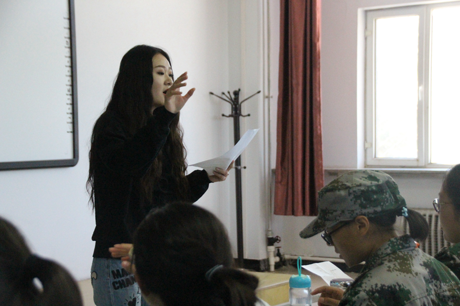 为了让同学们取得好成绩,指导老师也不辞辛劳地每日来为同学们纠正错误、精进技术。为了使整体效果更好,孙老师让同学们一排一排地分别演唱,纠正了很多同学的音准。孙老师告诉同学们,军歌要的是无与伦比的气势与最饱满的情感。“练就杀敌硬本领,练得豪气冲云天”,这样的歌词怎能不让人振奋,怎能不吼出穿云裂石的气势!