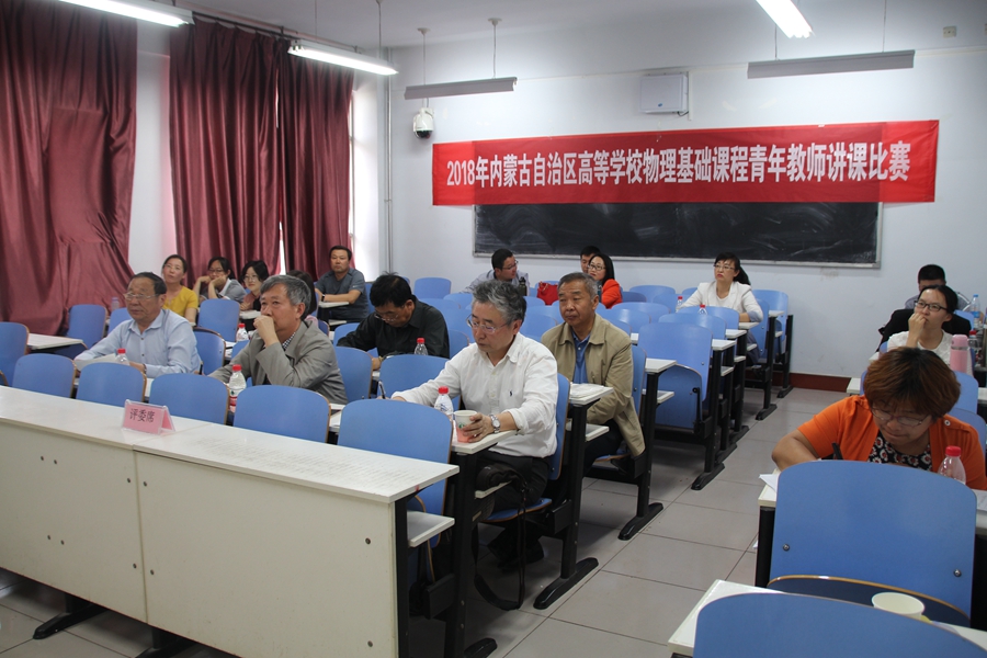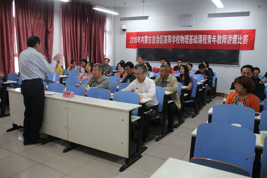 2018年5月26日,由内蒙古自治区物理学会主办,内蒙古师范大学物理与电子信息学院承办的2018年内蒙古自治区高等学校物理基础课程青年教师讲课比赛在我校田家炳教学楼512、513、514教室举行,来自自治区高校的15名青年教师参加比赛,评委由内蒙古自治区物理学会理事长班士良教授、内蒙古师范大学物理与电子信息学院院长特古斯教授及自治区部分高校物理学院的教授专家等六位老师担任。