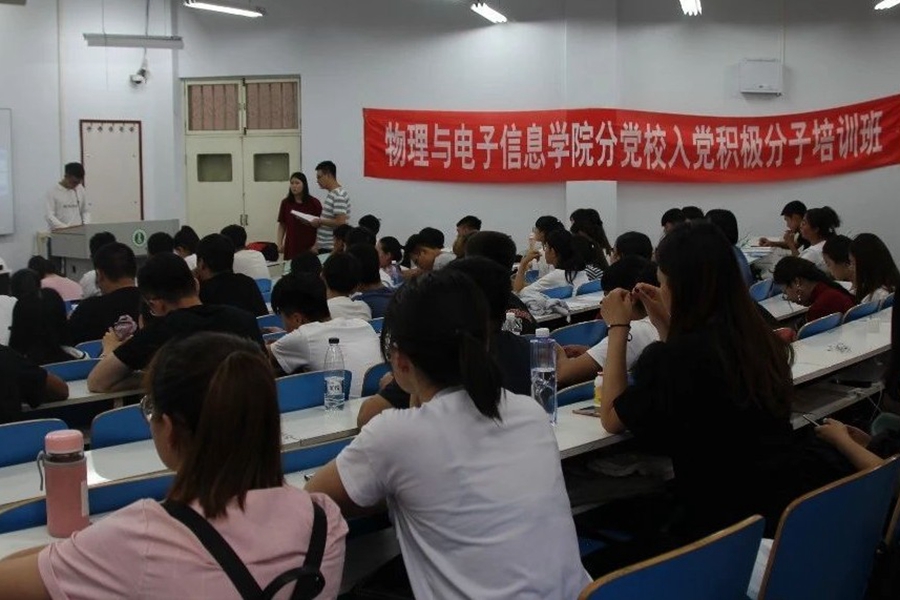2018年6月6日,物理与电子信息学院于田楼9共进行主题为“砥砺奋进,成就辉煌”的第15期入党积极分子党课第一讲,由内蒙古师范大学马克思学院王立华教授主讲,我院团总支书记萨其尔老师主持本次党课。