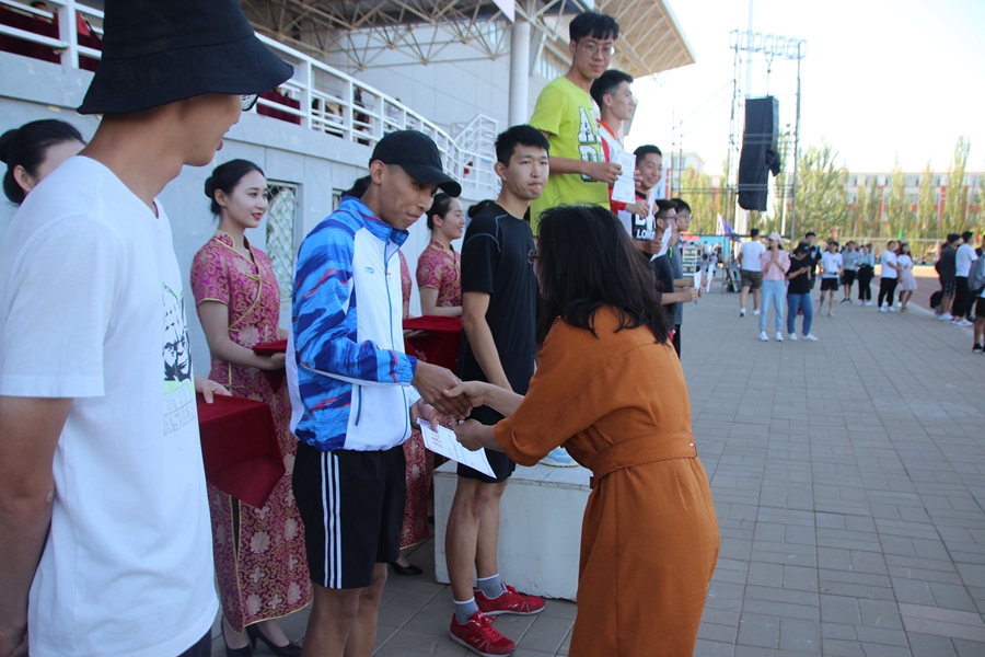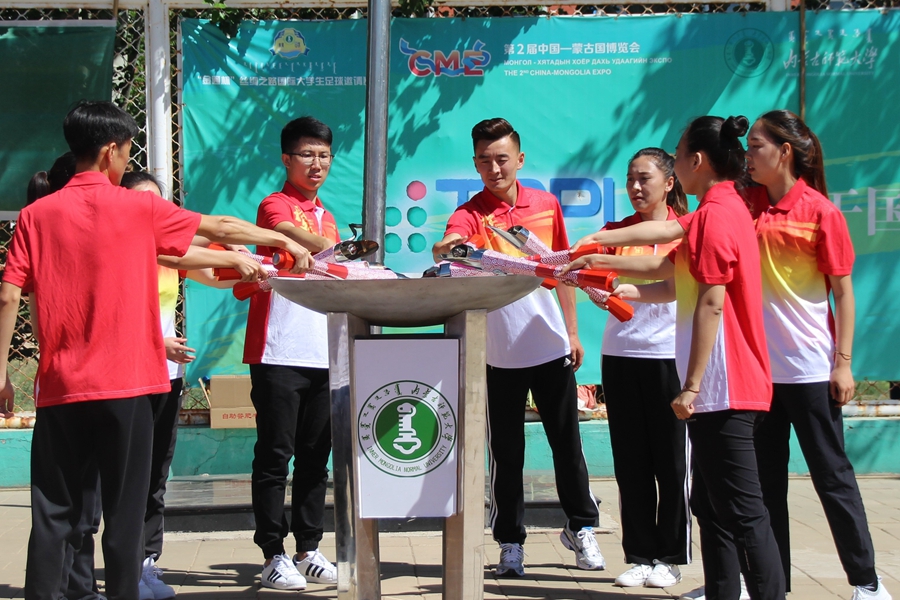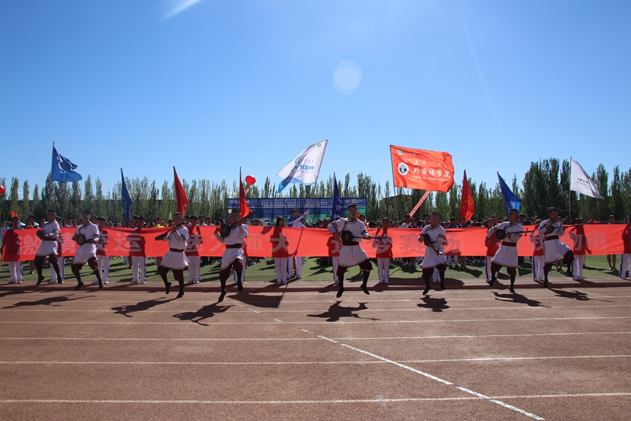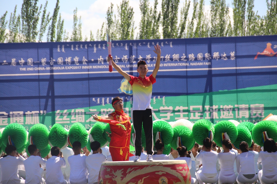2018年6月13日,内蒙古师范大学第四届校园奥林匹克运动会暨第五十六届田径运动会于盛乐校区体育场盛大开幕。开幕式亮点满满、精彩纷呈:庄严威武的国旗队、各学院别出心裁的入场节目、以及震撼人心的大型群舞表演,生动地演绎出“圣人训、五四情、师大梦”。表演过程中,演员们跑向操场中央,整齐地排列出“青年强、则国强”与“师大精神”等振奋人心的话语,使场内外的观众都们深切地感受到了师大学子朝气蓬勃的精神风貌。随后,我院十佳大学生“文体之星”阿亚拉格作为此次校运会主火炬手,带领火炬手们点燃象征奥林匹克精神圣火。