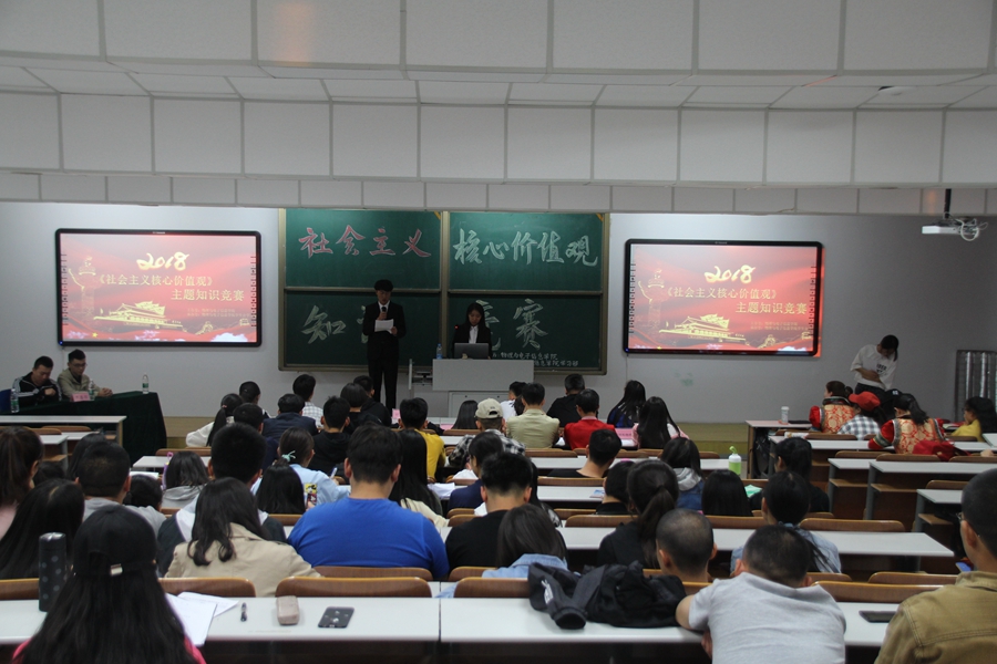 2018年4月26日星期四,我院于行知楼310举办了以社会主义核心价值观主题知识竞赛,学工办卢嘉琛老师担任嘉宾。