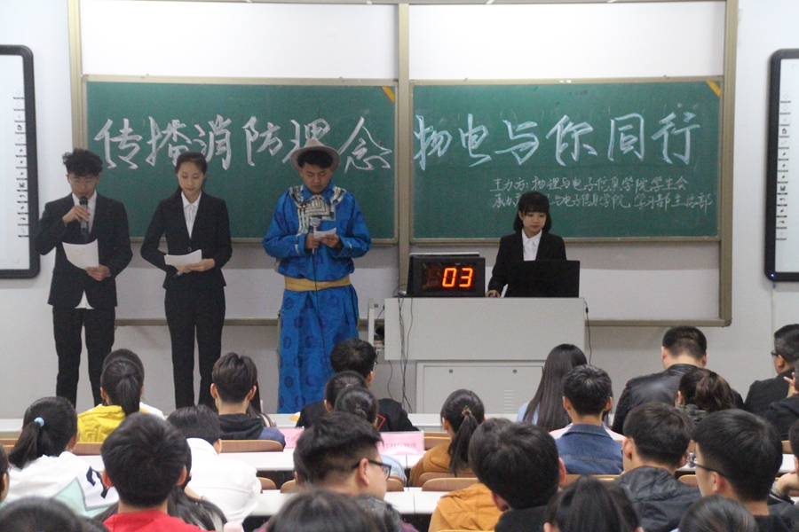 为使同学们深入了解消防安全知识、加强消防意识,2018年4月10日我院于行知楼310教室举办以“传播消防理念,物电与你同行”的消防安全知识竞赛。由学院学工办芦嘉琛老师、学生会副主席王洋、部长张云鹏同学担任竞赛评委。 在主持人简单的介绍规则后,知识竞赛宣告开始。来自我院大一五个班的十五名参赛选手开始了紧张激烈的比赛,同学们纷纷拿出了自己百分百的实力,信心满满,你来我往之间,展现了对消防知识的深刻了解。