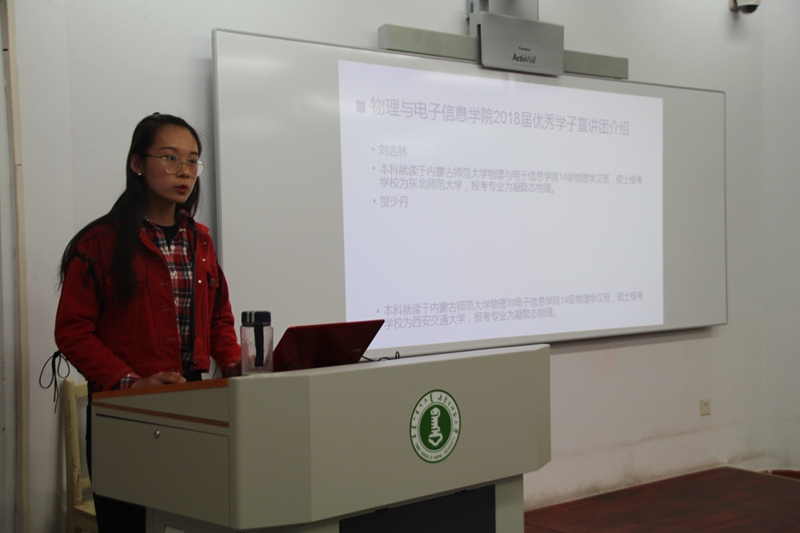 2018年4月16日,我院于田楼七共举办物理与电子信息学院自强事迹宣讲交流会。交流会由张俪馨同学主持,我院学工办木其尔老师及大二大三同学参加此次交流会