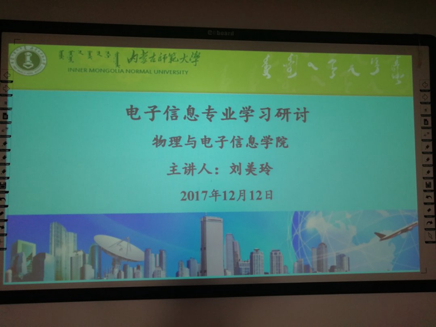 2017年12月12日,我院副院长刘美玲老师为我院2017级工程一班、二班于行知楼206举办电子信息专业学习研讨会。