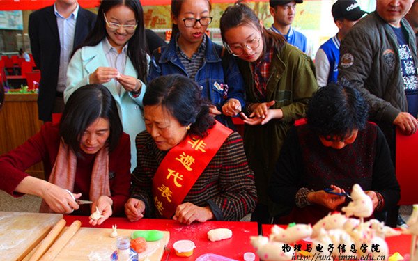 我院作为本次活动的承办学院,积极号召同学们了解非物质文化遗传的相关知识,并且鼓励大家来活动现场亲自与制作技艺传承人学习如何制作传统的寒食节面食。我院苏雅拉老师和塔林托亚老师与同学们一起参加了本次有趣而意义重大的活动。