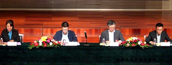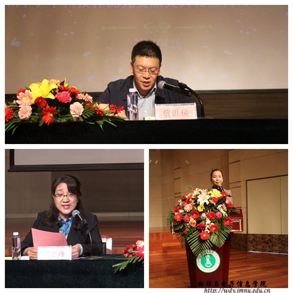 本网讯 2017年4月16日下午,由共青团内蒙古师范大学委员会主办,物理与电子信息学院承办的首届“直通挑战杯”课外学术科技作品竞赛颁奖仪式暨优秀作品展在逸夫楼音乐厅举行。校团委副书记贾世琦、物理与电子信息学院特古斯、何小龙、刘美玲等学院领导出席颁奖仪式。