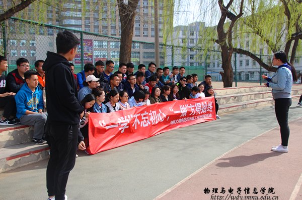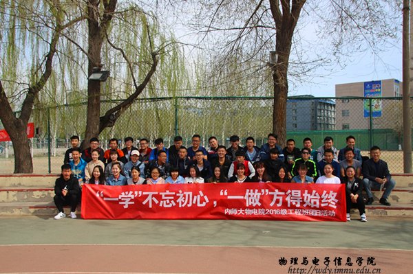 本网讯 为了响应学校“一学一做”教育实践的号召,同时增进同学们身为团员的先进性和光荣感,加强中国梦凝聚青春力量。 2017年4月18日,我院2016级电子信息工程班在西操场举办 “一学,不忘初心;一做,方得始终”为主题的团日活动。16级工程班班主任苏立德老师与学工办塔林托亚老师也一同参加了本次团日活动。