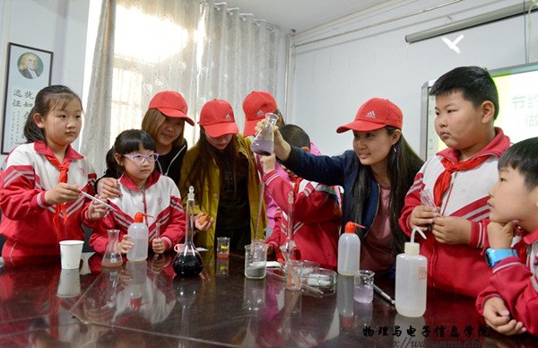 活动现场,大学生们一边进行污水处理实验,一边讲解水污染的危害和污水处理的方法,让孩子们意识到保护环境刻不容缓,保护环境应该由自己做起。