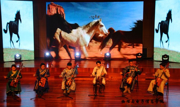 砥砺前行,继往开来,我们一起并肩而行,一路走来,多少过往都化作美丽的故事,在谈笑间,现场一段震撼人心的先导片聚焦起每一位观众朋友们的目光,视频开始用一段唯美的沙画展现了新生们所经历的精彩瞬间。同时,我院领导老师们和16级各班班主任欢迎新生们加入物电院,并表达了对新生们的殷切期望。随后,一缕悠扬的马头琴声,仿佛从深远的原野传来,《云青马》的自由奔腾正式拉开晚会帷幕。四位青春靓丽的主持人现身舞台中央,华丽的服装,走心的话语,无不体现着晚会的细致入微。民族风情浓郁的《希格希日》体现出草原儿女的热情豪放,《金蛇狂舞》的铿锵有力让全场领略了古筝的神奇美感。《十七岁》的我们用歌声诠释青春的气息;《鑫哥正传》用信仰追逐青春的足迹;《black pink》用舞蹈张开梦想的翅膀。年华似水,过往的《同学会》是短暂的美好,在谈笑间,《如此队友》以化为美丽的故事,《马头琴之恋》的岁月在惆怅交融间远去。动感的《bang bang bang》地带,放飞梦与希望的筑巢,燃烧青春不灭的火焰;《淳朴牧羊人》的诉说扣人心弦,回味无穷;尖叫与呐喊声中的《午夜梦幻》完美诠释出我们这个时代的最强音。热烈的情感盛放在时间里,不懈的追求怒放在生命中,《青春赞颂》将无限美好憧憬展现在脑海中,绽放着“物电人”的永不服输的向上精神。
