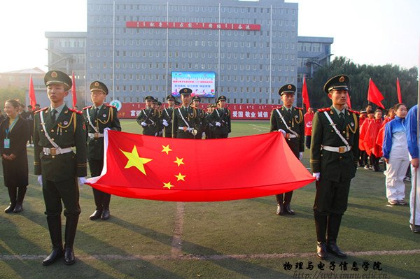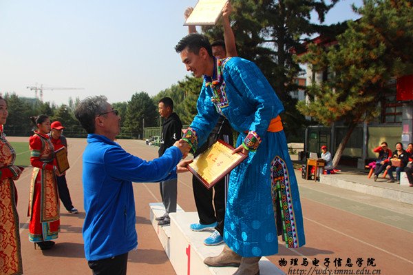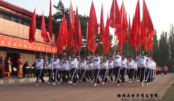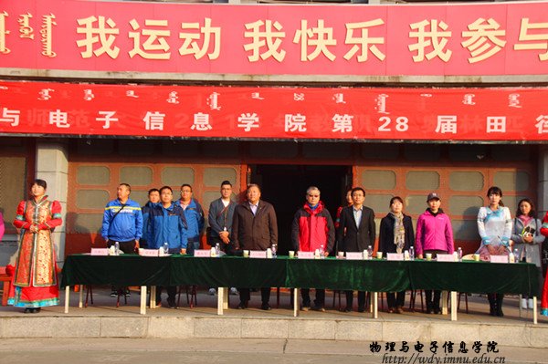 本网快讯 2016年10月13日,在师大东操场,物理与电子信息学院第28届田径运动会拉开帷幕。我院院长特古斯教授,党总支副书记何小龙老师,副院长吉日嘎拉教授,团总支书记萨其尔老师等多位领导、老师及各班班主任共同出席此次院运会。在入场式中,英武帅气的国旗队、彩旗队、花束队、裁判代表方阵、各班的方阵排成整齐的队列,依次走过主席台。在运动员代表、裁判员代表庄严宣誓后,特古斯院长致开幕词,并由何小龙老师宣布本届运动会正式开幕。随着运动会开幕式的结束 ,吉日嘎拉教授打响了本届院运会的第一枪,运动会各项赛事开始有序进行。