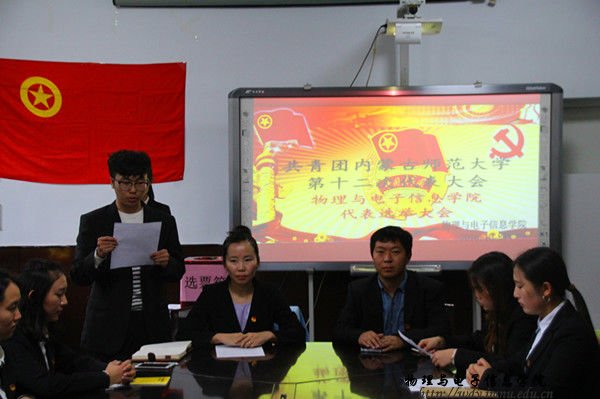 本网快讯 2016年10月27日,共青团内蒙古师范大学第十二次代表大会物理与电子信息学院代表选举大会在物电楼会议室举行召开。我院团总支书记萨其尔老师,学工办苏雅拉老师及学院各班团支书和团员代表出席此次大会,并由张俪馨同学主持会议。