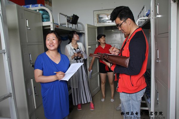 本网讯 为了丰富校园文化生活,共造美好的宿舍生活空间,进一步活跃宿舍文化生活,营造生动活泼、健康有益的宿舍文化氛围。2016年5月到6月我院宿舍文化月活动全面开展,本次活动历时一个月,同学们紧紧围绕以“诠释爱 爱全室”的主题,用心、用情,动手、动脑,全面升级改造宿舍环境,努力为自己营造一个良好的学习生活环境。6月2号上午,我院邀请大一各班班主任担任评委,深入宿舍,就寝室风貌、内务卫生、寝室特色等方面进行评比打分,最终评选出男女共8个优秀宿舍,6名优秀个人。