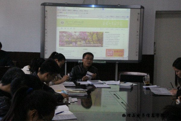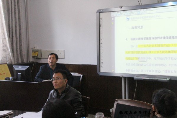 本网讯 2015年11月20日上午,为了配合学校迎接本科教学审核评估工作,我院于物电楼会议室为全体学生会成员及学生干部召开会议。我院党总支副书记何小龙老师,团总支书记萨其尔老师和实践创新部主任曹永军教授出席本次会议。会议中何老师明确指出了迎评的大体方向,简述了迎评的主要内容。同时曹老师为同学们讲解了有关教学评估的知识,在一相关些细节方面做了明确指导。这次评估对我院而言是一次全新的检验,也是一次展示风采的机会,所以需要同学们从本质上认识到评估的重要性,并且以身作则,起到学生干部的带头作用,为物电为师大贡献一份绵薄之力。