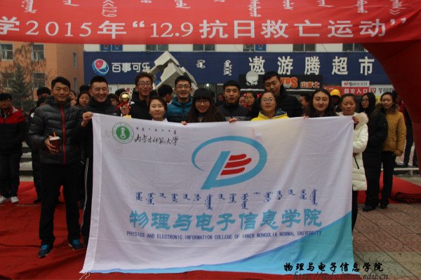 本网讯 2015年12月9日上午,我院组织阿亚拉格,宝吉如嘎等十六名队员参加校级“纪念129抗日救亡运动”的接力比赛。12月9日对我们学生来说是一个特殊的日子,这天是学生掀起爱国运动的标志。赛前,按照比赛规则,将参赛队员分为两组:学院队和学院学生会队。在接力比赛中,我院选手们都热血激昂不畏寒风凛冽,在跑道上展现着物电人独特的风采,最终获得第三名的好成绩。他们是青春的领跑者,是中华民族的强大支柱。在当天晚上,我院组织大一全体同学在田楼九共观看战争影片《智取威虎山》。通过这样的活动,使我院与其他学院之间架起了友谊的桥梁,增进了情感;同时,我院各个年级的学生也彼此熟悉,团结互助,更加增强了同学们的爱国励志情怀。